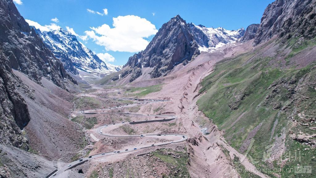 2024年6月1日,新疆独库公路,山路蜿蜒,车辆川流不息。