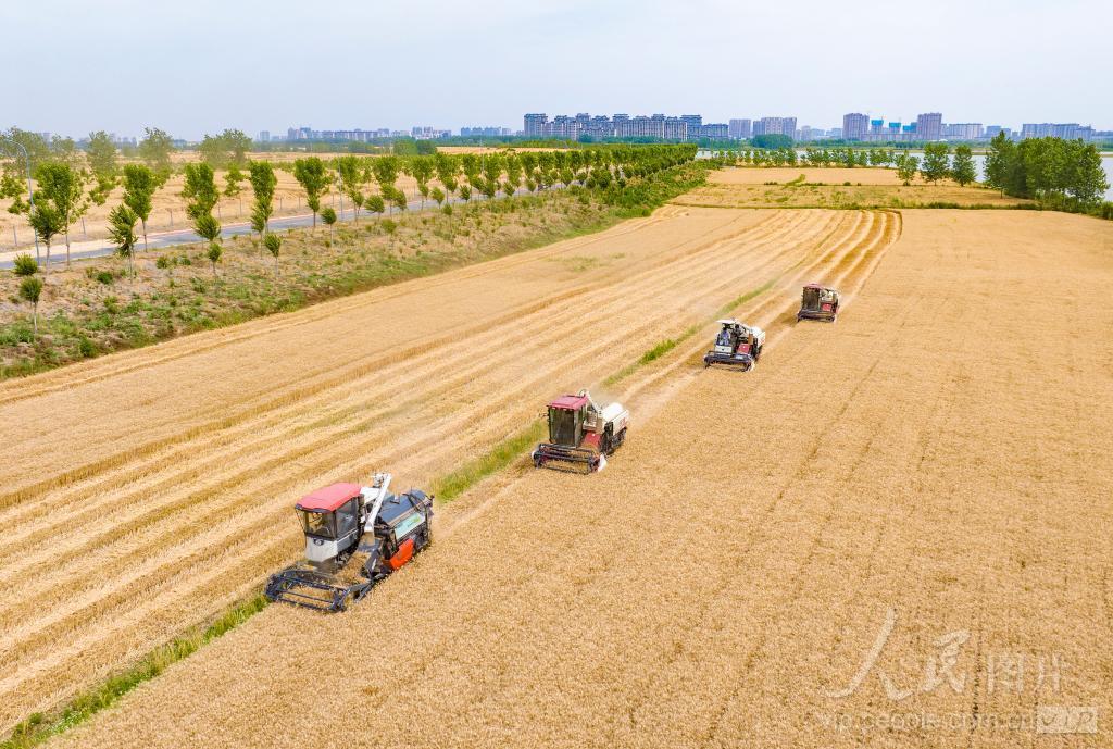 2024年6月4日,江苏省宿迁市泗洪县瑶沟乡农机服务队正在帮助桂湾村种植大户抢收小麦。