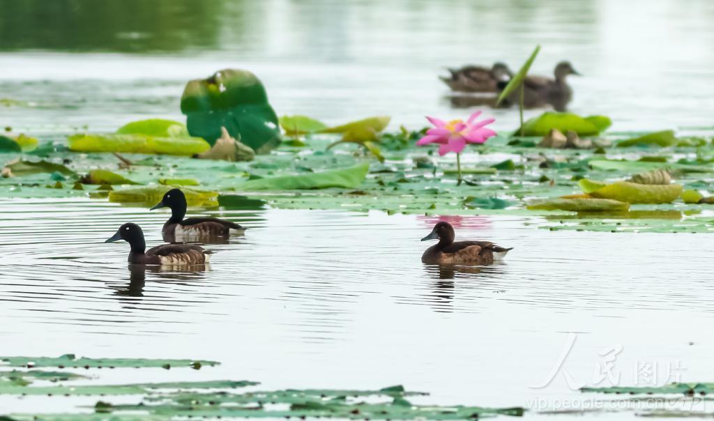 2024年6月15日,江西省瑞昌市东郊,几只青头潜鸭在水面上游弋嬉戏。青头潜鸭素有“鸟中大熊猫”之称,是国家一级保护动物。 近年来,瑞昌市积极开展生态环境治理,通过沿湖岸线整治、水质生态修复等举措,优化、美化生态环境,为青头潜鸭等候鸟营造了更加宜居的美好家园。