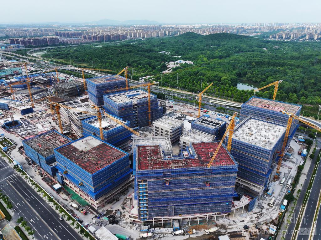2024年6月16日,安徽省芜湖市镜湖区,芜湖数字经济产业园项目施工现场塔吊林立,一片繁忙,各项建设正稳步推进。
