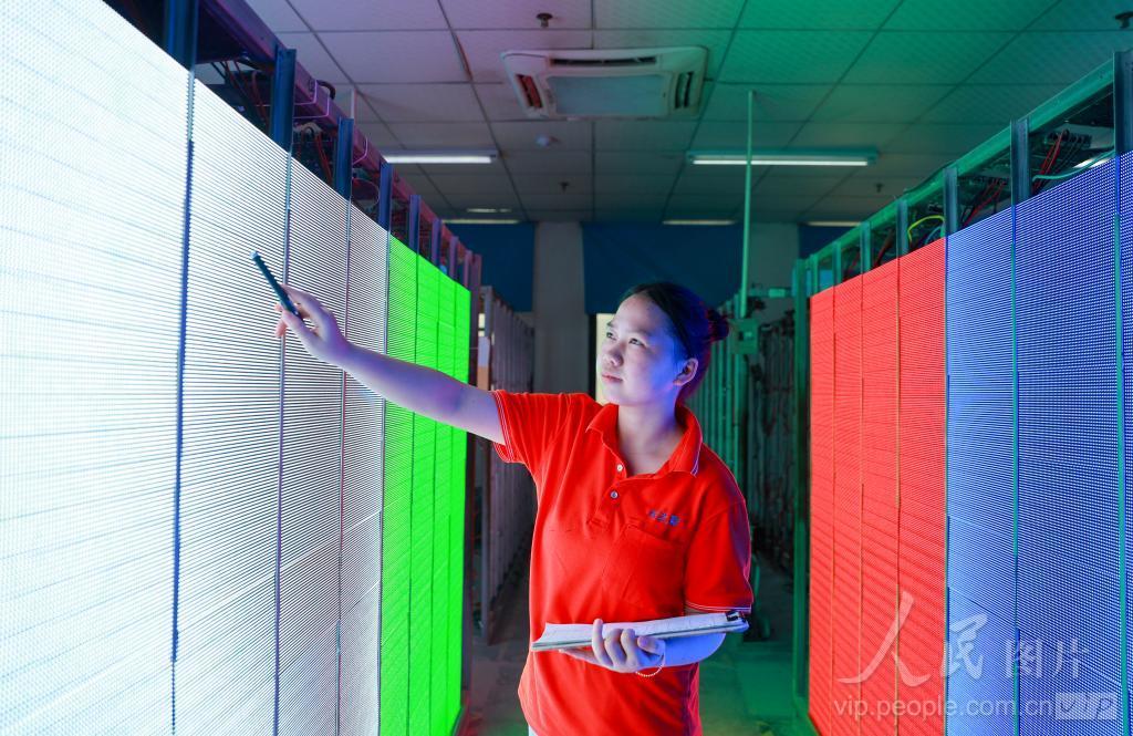 2024年7月25日,江西省瑞昌经开区科技园江西天之彩显示技术有限公司生产车间内,工人正在赶制国内外订单。